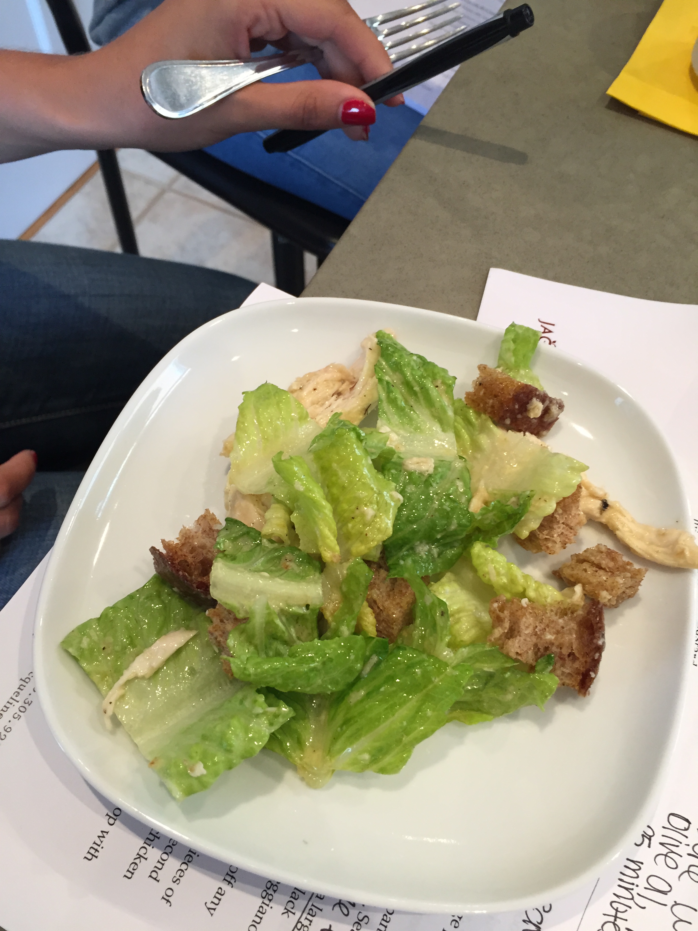 4. Add romaine lettuce and croutons to the dressing. Mix well. Serve plates and top with chicken. Serve with more parmigianno-reggiano and freshly ground pepper. Serves 4